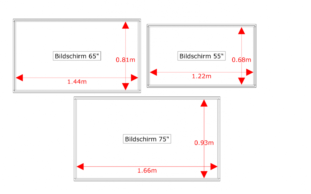 Unsere Tabelle mit den Massen der gängigsten Bildschirmen hilt Ihnen eine Überblick zu verschaffen: